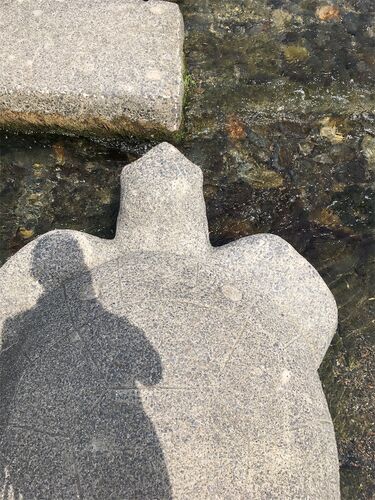 京都大学の授業まで時間があるので、下鴨神社から糺ノ森を抜けました。暑いので、亀の背中に乗って高野川を遡って無邪気に遊んでいましたら、同志社大学の学生さんから、鴨川利用についてインタビューを受けました。